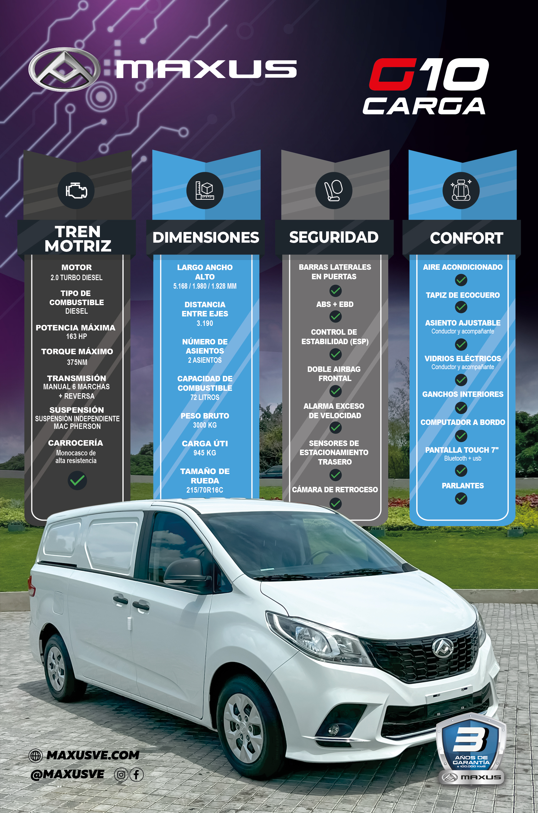 G10 CARGO fue diseñada para transportar diferentes tipos de carga, para productos que requieren altas y/o bajas temperaturas, tales como alimentos o medicamentos. Es la más versátil de su categoría. • Seguridad: Doble airbag frontal, sensor de retroceso, freno de disco en las 4 ruedas, ABS + EBD.